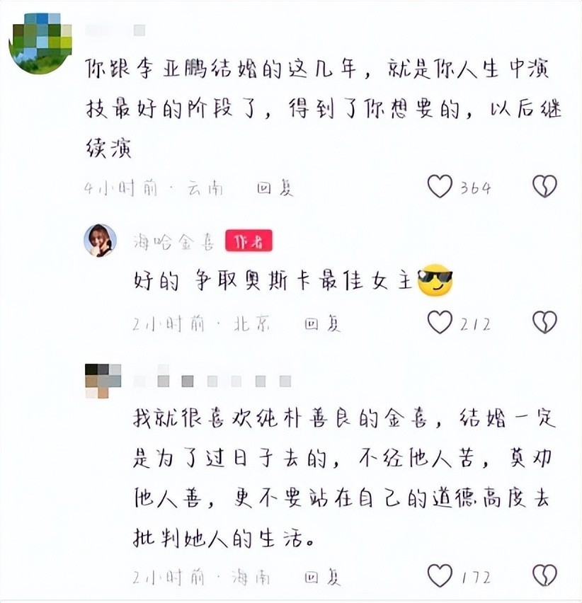 53. 面对这些尖锐留言,海哈金喜并未回避,而是直接回复:“好的,争取拿个奥斯卡最佳女主角奖。”